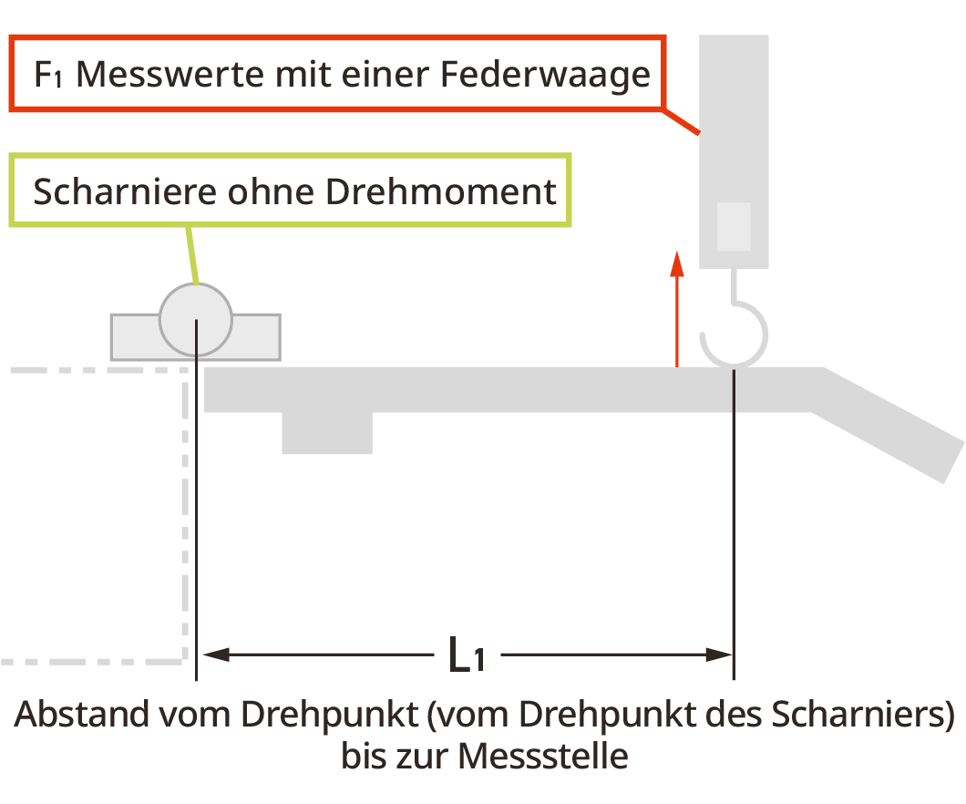 Moment des Deckels/der Tür = L1 × F1 × 9.80665 ÷ 100