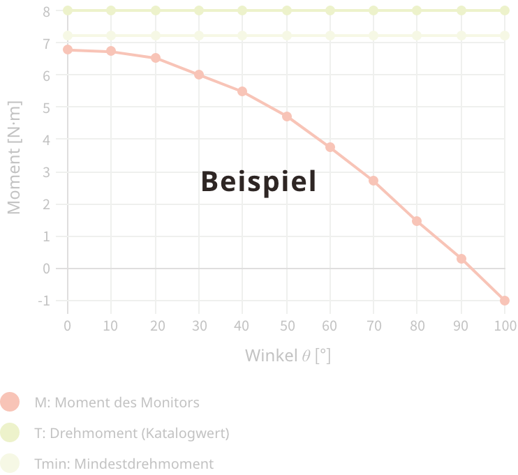 * Maximales Moment bei allen Winkeln, einschließlich derer außerhalb des Einstellbereichs. Berechnet mit der Erdbeschleunigung g= 9.80665 m/s2.