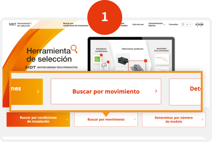 Seleccione uno de los tres métodos de selección: «Buscar por modo de instalación», «Buscar por movimiento» o «Buscar por modelo».