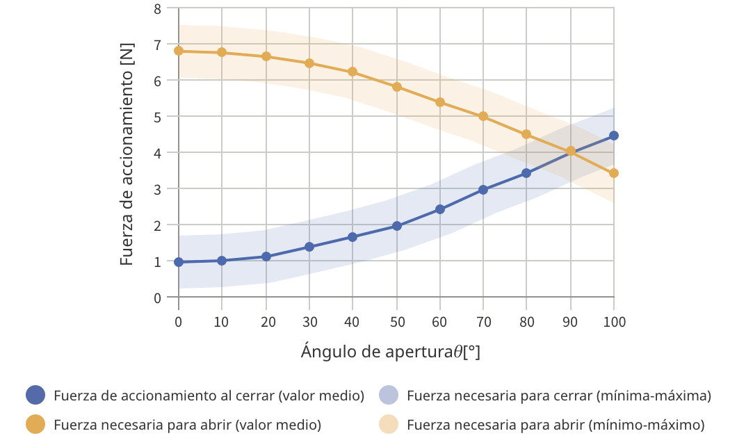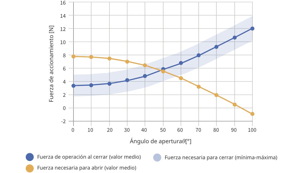 Cuanto menor sea el valor de la fuerza necesaria para abrir y cerrar, más ligera será la sensación al accionarlo.