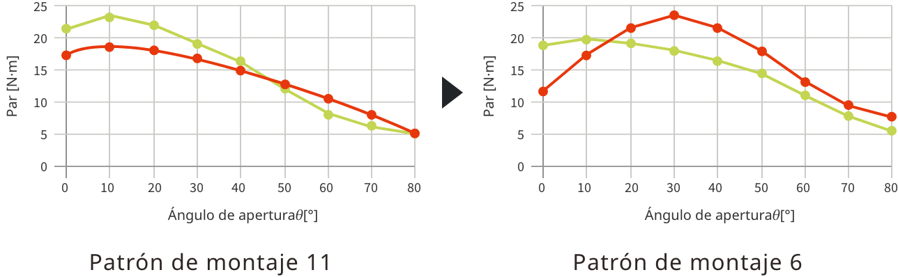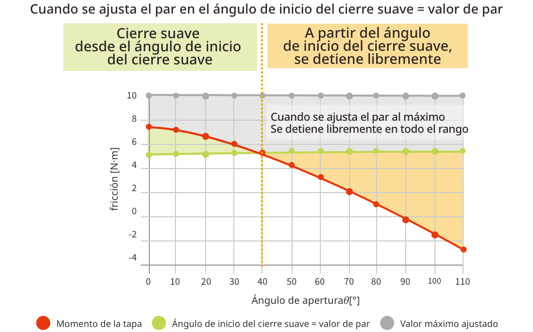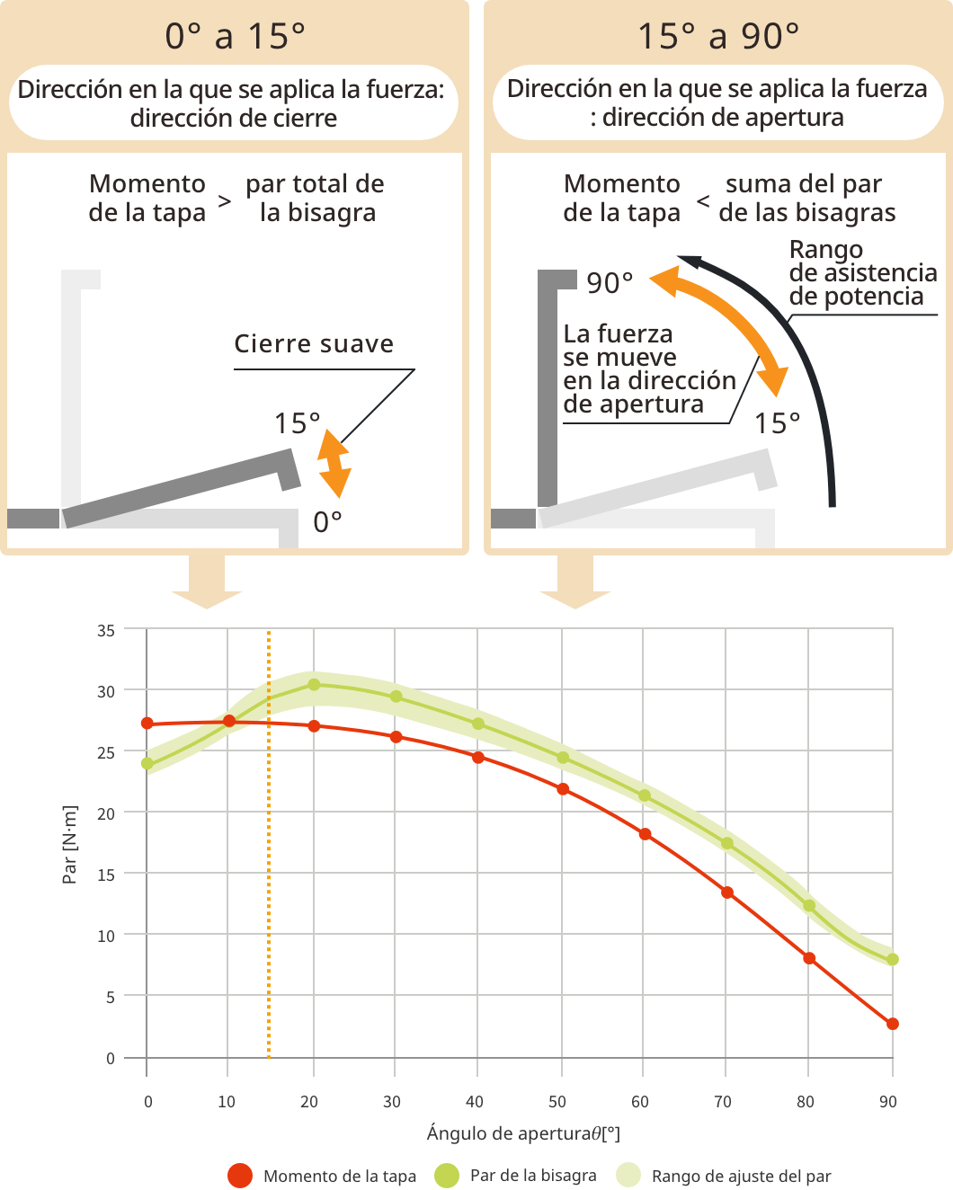 * Sin embargo, aunque el par de la bisagra sea superior, si la diferencia es demasiado grande, la tapa se abrirá por sí sola, por lo que es preferible que la diferencia sea pequeña, como se muestra en el gráfico de la izquierda.