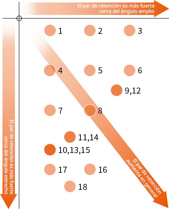 Alrededor de 0°, el par de retención del soporte S-AT es inferior al momento de la tapa.