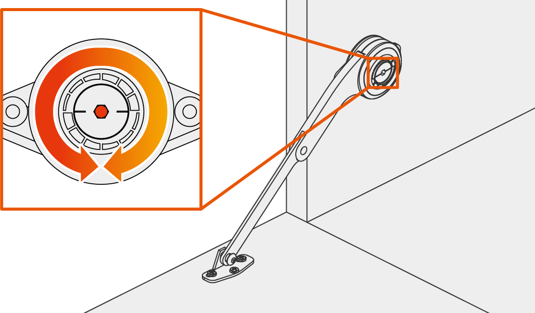 Al reducir el par de retención en ángulos estrechos y aumentar el par de retención en ángulos amplios, se ha logrado un movimiento ideal de la puerta.