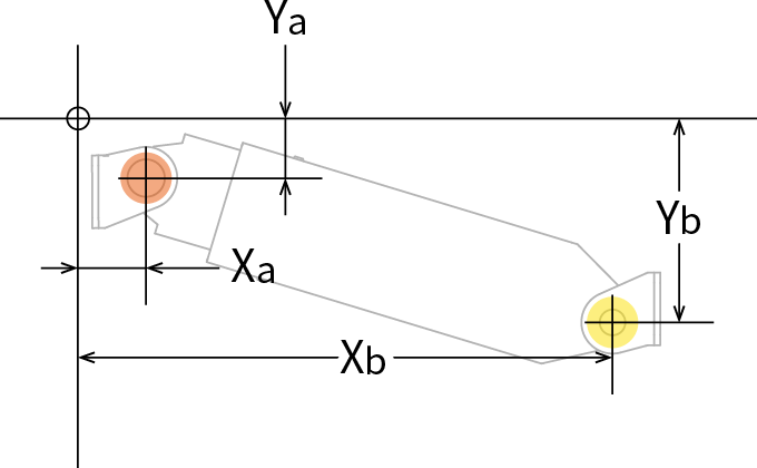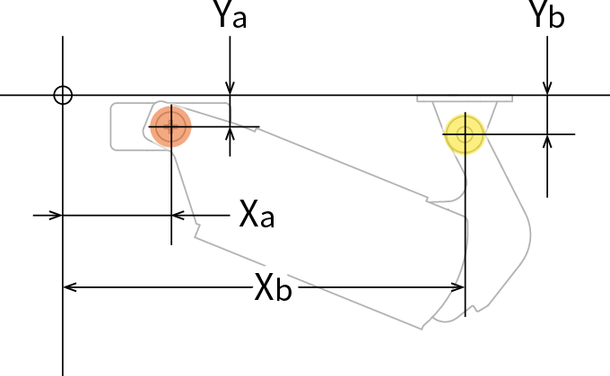 | Posición de montaje | Xa | Ya | Xb | Yb | Características |