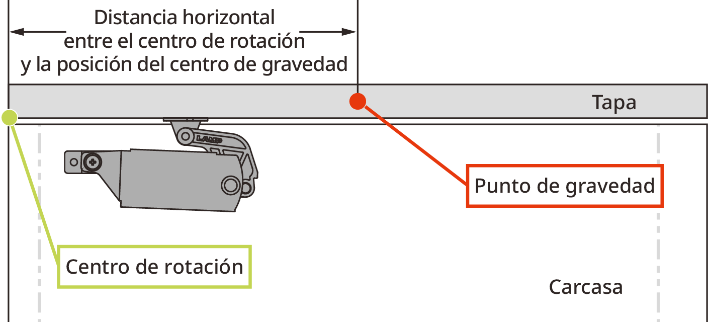Para abrir fácilmente la tapa superior, se recomienda que el «valor de par del producto (la fuerza que intenta levantar la tapa superior)» sea mayor que el «momento de la tapa superior (la fuerza que intenta girar la tapa superior)».