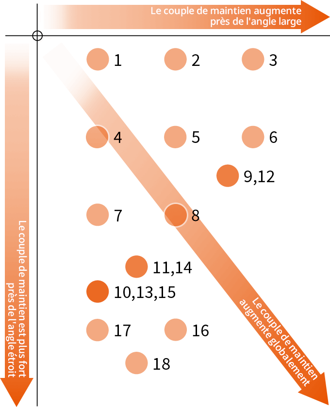 * Si le résultat n'est pas idéal, envisagez de déplacer le centre de gravité. Les conditions ci-dessus correspondent uniquement à l'idéal recherché par notre société.