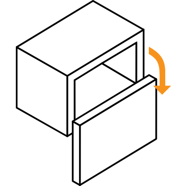 L'apertura verso il basso è utilizzata per ante situate ad un'altezza inferiore rispetto al livello degli occhi, come i mobili TV, mentre l'apertura verso l'alto è utilizzata per ante situate ad un'altezza superiore rispetto al livello degli occhi, come i pensili della cucina. Il coperchio superiore è spesso utilizzato per i contenitori a panca e i contenitori per giocattoli.