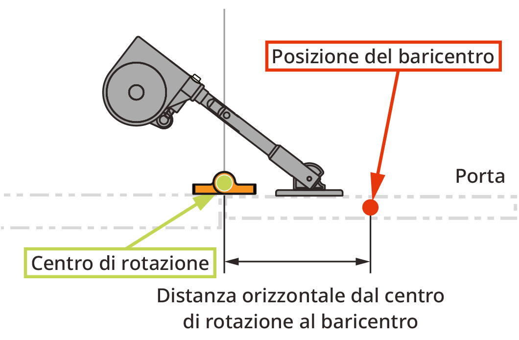La posizione del baricentro può essere calcolata dividendo la lunghezza della porta per 2, se si tratta di un pannello unico di materiale omogeneo.
