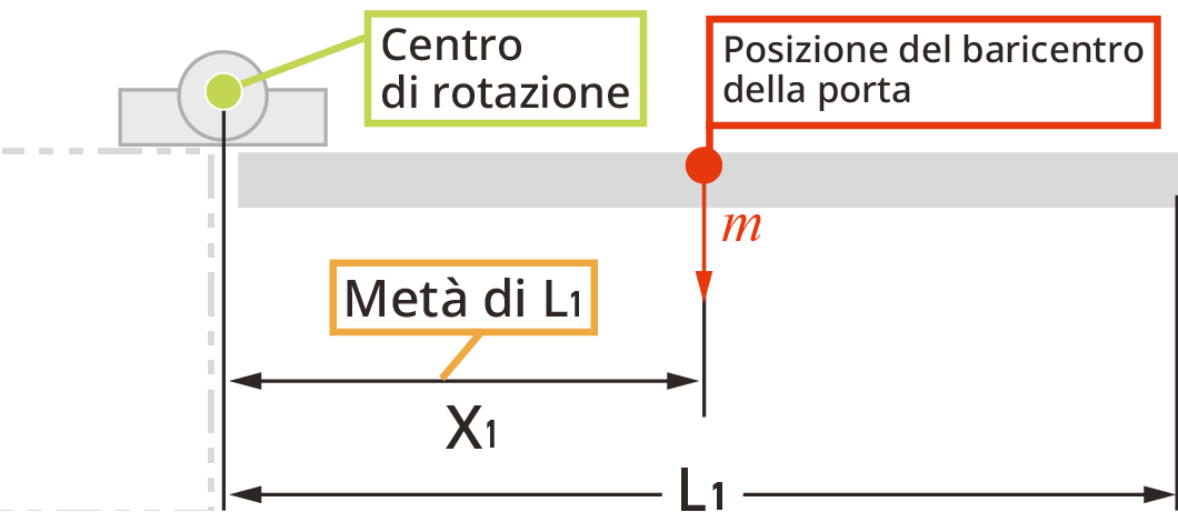 Come illustrato nella figura, se il coperchio o la porta sono in condizioni uniformi, il baricentro si trova al centro. In altre parole, X1=L1÷2.