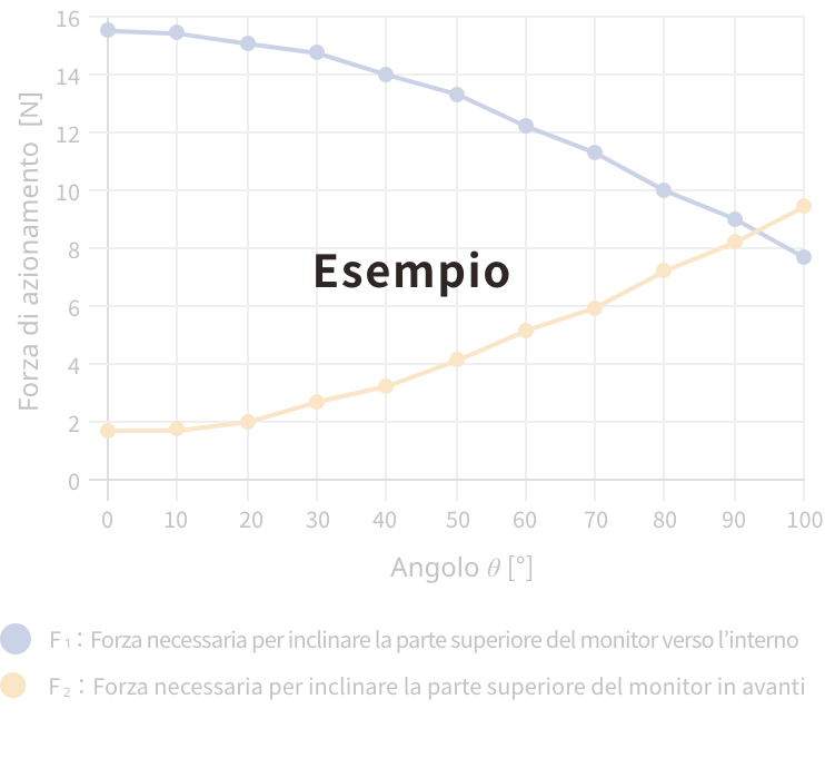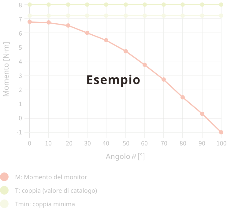 Quando si desidera che il monitor si arresti liberamente, il tipo di cerniera a coppia disponibile varia a seconda della massa, dell'angolo di regolazione e di altri fattori.